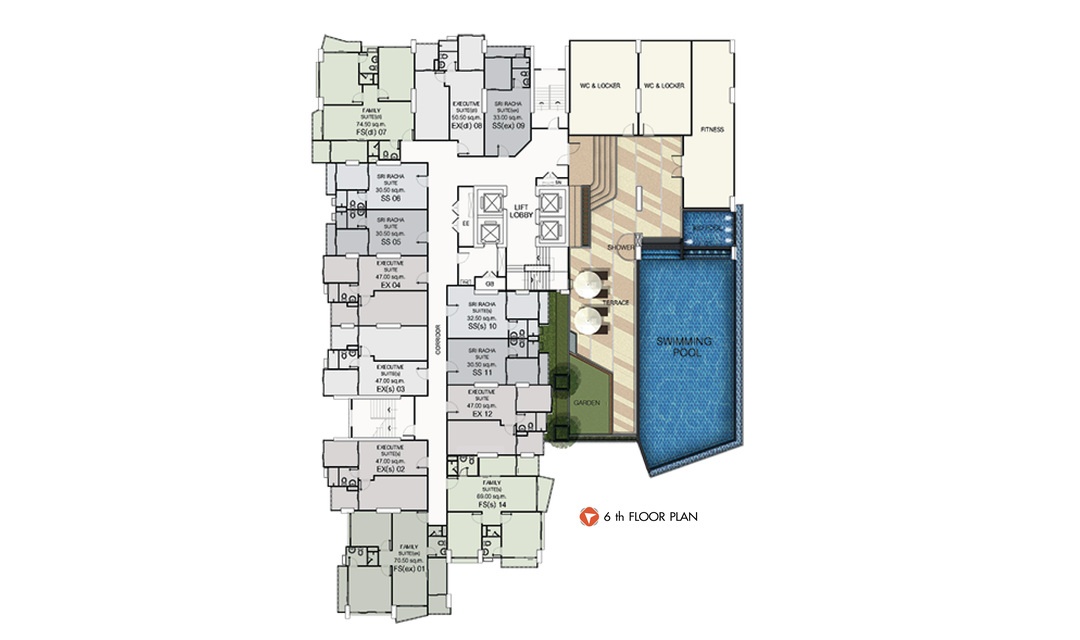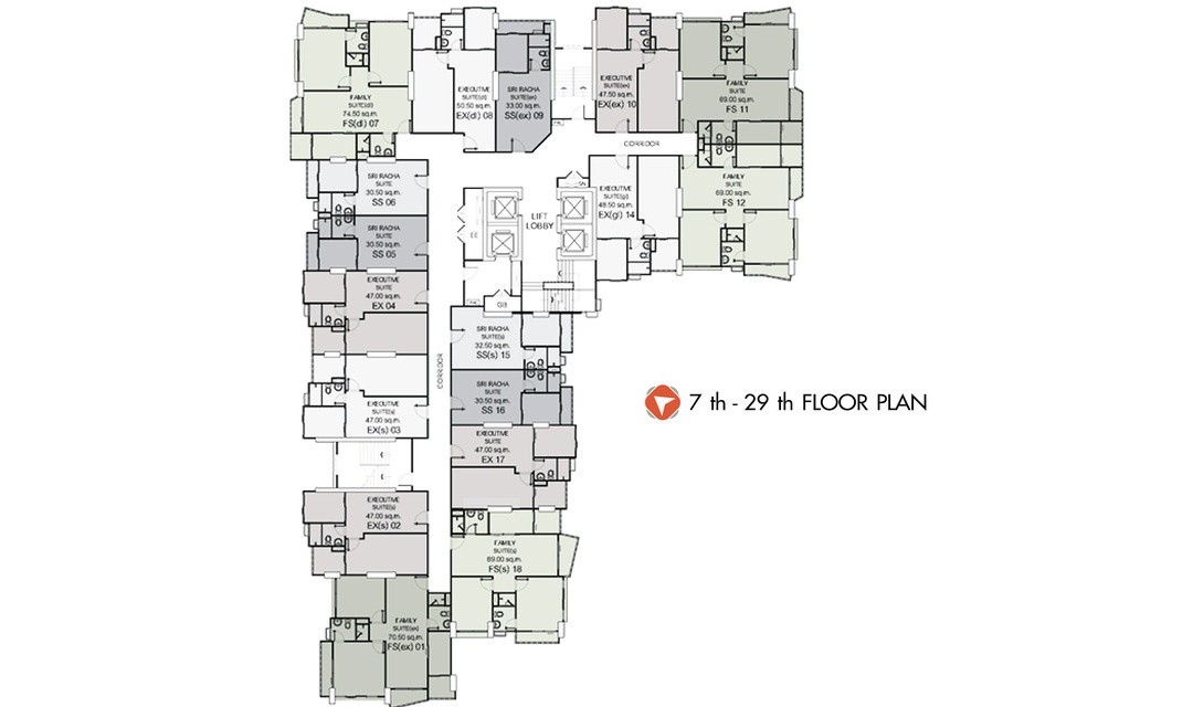 ประเภทห้อง: 34 ตรม. สตูดิโอ, 50 ตรม. 1 ห้องนอน, 80 ตรม. 2 ห้องนอน