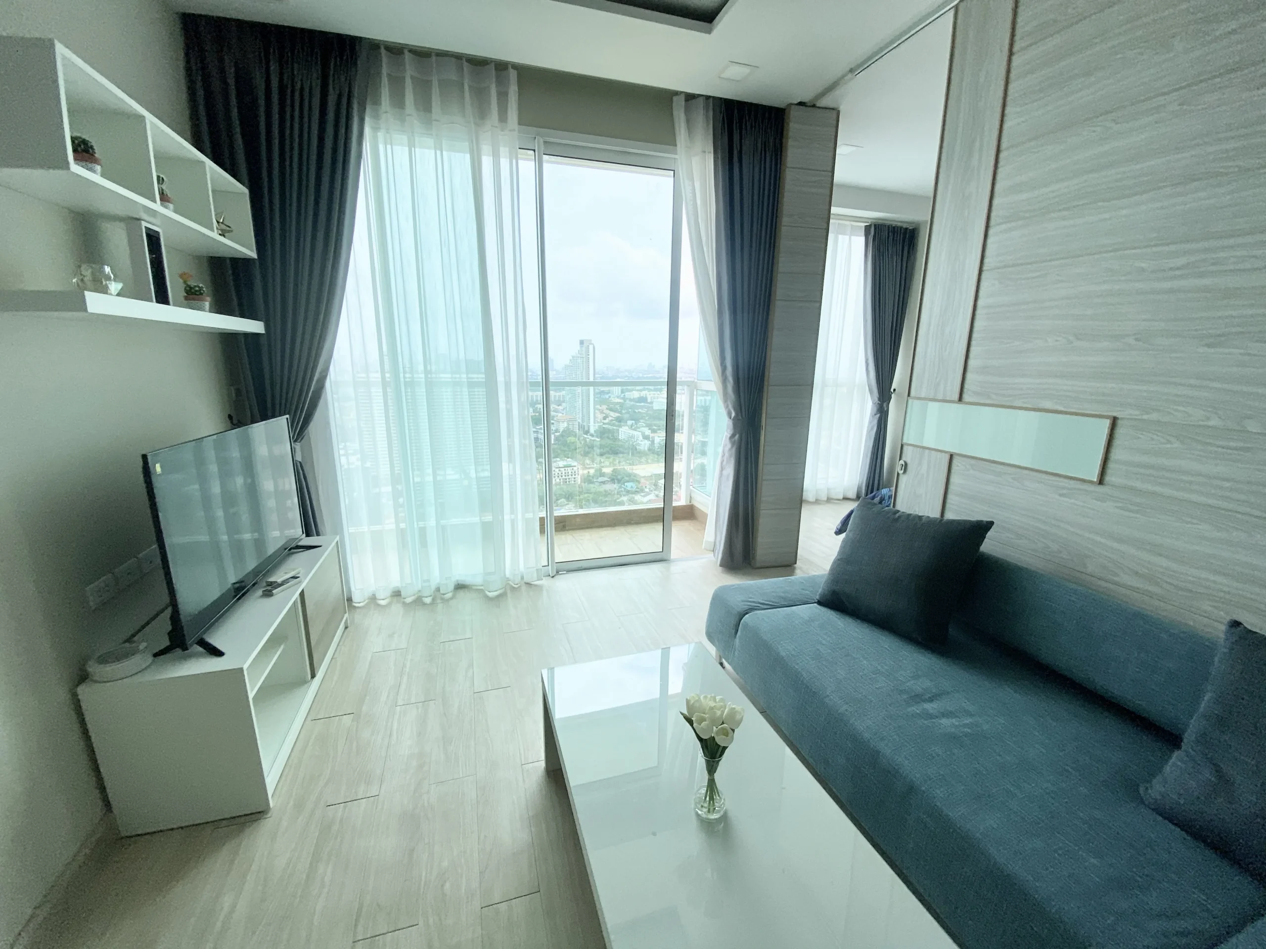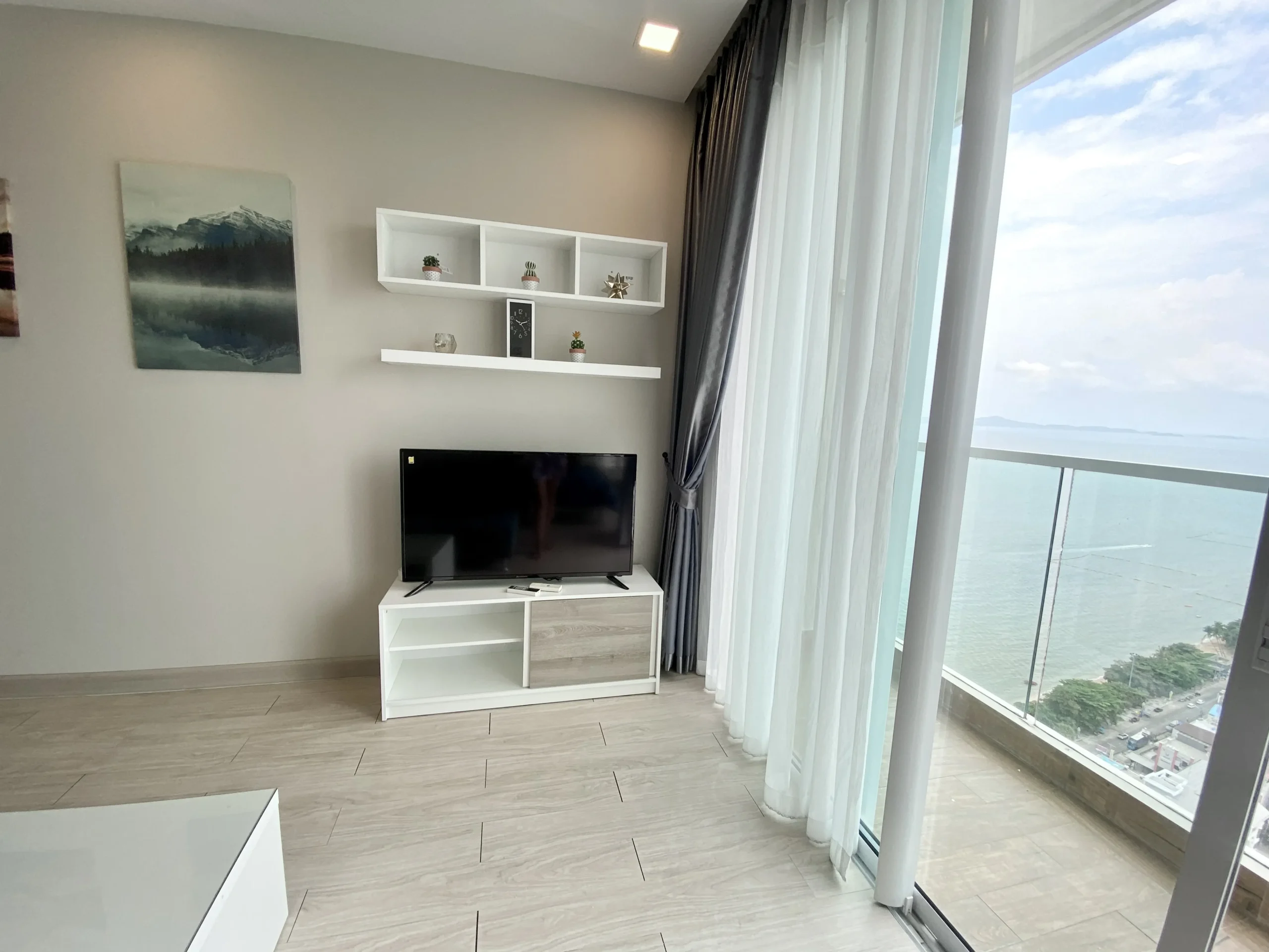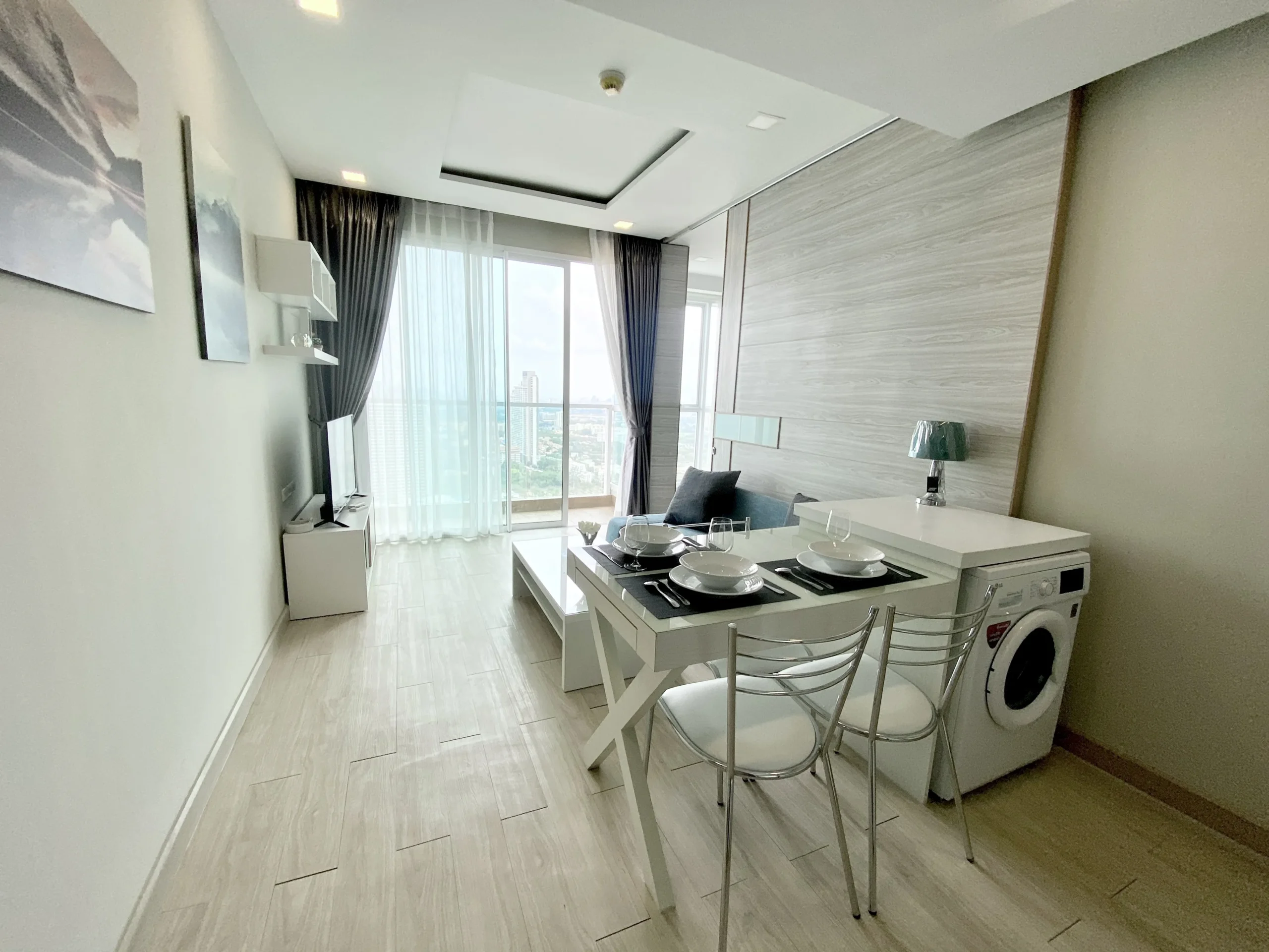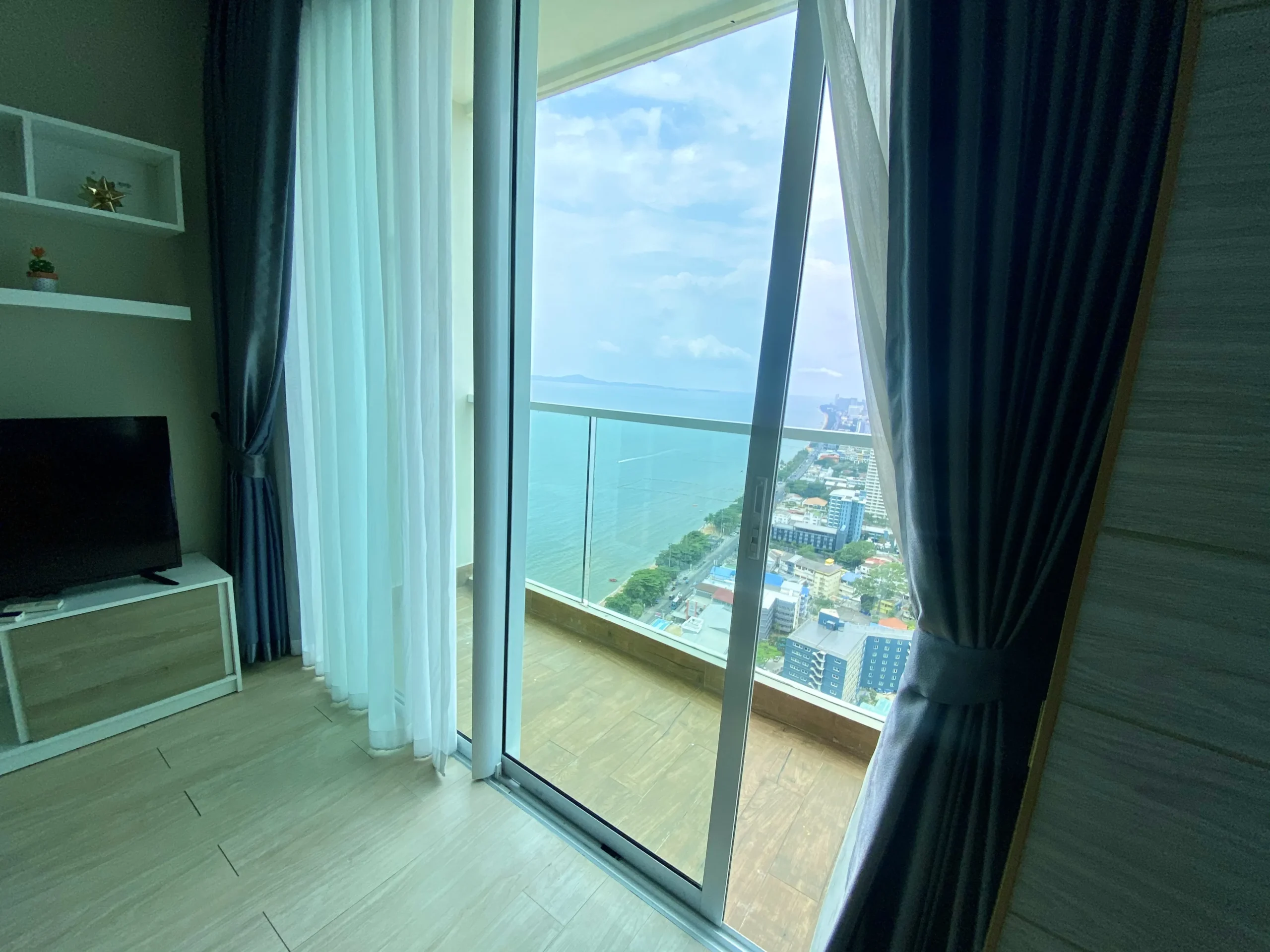 Located in the beachfront development Cetus Beachfront Pattaya, this high-floor unit offers direct coastal living with uninterrupted sea views.